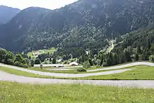 On the Bonnevaux territory, by the roadside about 5600 m below the pass, is the Chapelle Notre-Dame-des-Sept-Douleurs de Bonnevaux|or Our Lady of Sorrows registered in the cultural heritage's general inventory of the Rhône-Alpes region. Erected in 1844 by Rev. Girod, pastor of Bonnevaux, it was partially restored several times and fully restored in 1982. The bell of 1910 is called "the Virgin." .[2] The road was created in 1917 and redone in 1940; it has since been widened and tarred. Until 1964, the pass served as pasture for cows of the Abondance breed going to or returning from higher pastures. The large trough served not only for watering the cows but also for cooling the engines of cars that overheated going up the steep slopes. The road was plowed in winter on the Le Biot in 1964 and on the two sides in 1966.