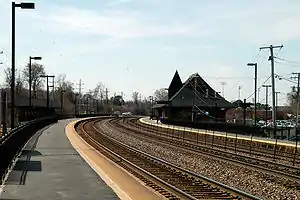 College Avenue is one of the two stations on Metra's Union Pacific/West Line located in Wheaton, Illinois. The station is located at 303 N. President Street in Wheaton, and lies next to Wheaton College. The station is located 23.8 miles (38.3 km) away from Ogilvie Transportation Center, the eastern terminus of the West Line.[2] In Metra's zone-based fare system, College Avenue is in zone E. As of 2018, College Avenue is the 47th busiest of the 236 non-downtown stations in the Metra system, with an average of 1,059 weekday boardings.[1]