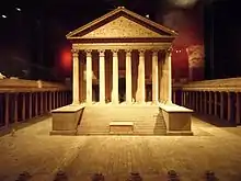 During the rule of Augustus (30 BC to AD 14), the Ara Ubiorum (Altar of the Ubii) was constructed within the city limits.[1][2] This altar was possibly foreseen as the central place of worship for a greater Germanic province, which would comprise lands across the Rhine, which remained unconquered at this point. The noble Segimundus is mentioned as the priest of the Ara in the year AD 9. He was from the family of Arminius, leader of the Cherusci. After Arminius' defeat of Publius Quinctilius Varus in the same year at the Battle of the Teutoburg Forest, the plans for a greater German province were largely set aside. However, the altar itself retained some of its importance as the city is mentioned as “Ara Ubiorum” in many inscriptions.