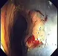![]() Colonoscopy being performed | |
