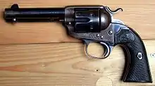 The Colt Frontier or Frontier Six-Shooter was a Colt's 1873 "Model P" type revolver manufactured in .44-40 Winchester caliber instead of .45 Colt (in which configuration it was called the Single Action Army) so that it was compatible with Winchester Model 1873 ammunition. Production began in 1877. Colt Frontier Six-Shooter was the actual name of the Colt pistol model, and this was acid-etched on the left side of the barrel. After 1889, the legend was roll-stamped until 1919, when the caliber designation ".44-40" was added. Later Colt 1878 Double Action Army Models also wore this designation on the barrel when chambered in .44 WCF/.44-40 Winchester. The Bisley 1895 Model was the final Colt to wear the Frontier Six Shooter designation.[18]