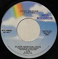 In 1976 Olivia Newton-John's recording of "Come On Over" was released as a single and also became the title track of her 1976 album. It peaked at #23 on the Billboard Hot 100 and was Newton-John's sixth #1 in a row on the Easy Listening chart, for one week in April 1976.[1] "Come On Over" peaked at #5 on the US country chart[2] and #3 in New Zealand.