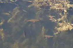 There is a variety of the common rudd, popular among pond-keepers, known as the golden rudd, which has a gold-coloured body.[8]