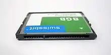 CompactFlash (CF) is a flash memory mass storage device used mainly in portable electronic devices. The format was specified and the devices were first manufactured by SanDisk in 1994.[3]