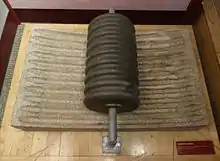 Rodolphe Lindt invented the "conche" in Berne, Switzerland, in 1879. It produced chocolate with superior aroma and melting characteristics compared to other processes used at that time. The Lindt chocolate company states that Lindt (perhaps mistakenly) allowed a mixer containing chocolate to run over a weekend (or possibly overnight, according to other variants of the possibly-apocryphal story).[3] Upon returning to the device, Lindt recognised the final product to have different properties to conventionally-produced chocolate at the time, with a less granular texture and greater shine than conventional chocolate at the time, which was generally "gritty" when solidified owing to the presence of non-ideal cocoa butter crystals. Lindt's invention made the mass-production of chocolate bars more practical, eventually replacing chocolate beverages as the primary means of mass chocolate consumption.[4]