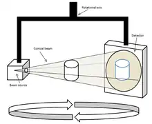 Cone beam computed tomography (or CBCT, also referred to as C-arm CT, cone beam volume CT, or flat panel CT) is a medical imaging technique consisting of X-ray computed tomography where the X-rays are divergent, forming a cone.[1]