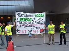 The CNT says of its membership, "We make no distinction at the time of admission, we require only that you are a worker, student or unemployed. The only people who cannot join are those belonging to repressive organisations (police, military, security guards), employers or other exploiters".[2]