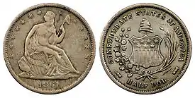 Liberty (seated), Liberty (leaning on shield) Hoyer & Ludwig (Richmond, VA) (170,994 issued)[44] | |