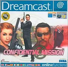 Confidential Mission is a light gun game published by Sega, first available as an arcade game, then ported to the Dreamcast. The game is in the same style as the Virtua Cop series or The House of the Dead series, with support for one or two players. The game was developed by Sega's Hitmaker development team and first released in 2000. Its plot is of the same vein as James Bond and Mission: Impossible. Despite it also having an arcade release, it never enjoyed the popularity of the Virtua Cop nor The House of the Dead series, which were also produced by Sega.