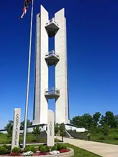 The Lewis and Clark Confluence Tower is a 180-foot-tall (55 m) tower on the Illinois bank of the Mississippi River at the confluence of it and the Missouri River. The tower complements the Lewis and Clark State Historic Site, about one mile to the south, where the Lewis and Clark Expedition made winter camp before setting up the Missouri river.[1]