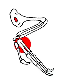 Much of its anatomy resembles that of archaeopteryx, especially the pectoral girdle and forelimbs.[6] It is better adapted for flight than archaeopteryx, due to the elimination of two thoracic vertebrae.[6] The development of a pygostyle also shows better adaptation for flight, as this replaces the long tails present in earlier birds.[2] Similar to archaeopteryx, confuciusornithids possess a large first digit with a hook. The digit implies a climbing lifestyle, as they serve to allow for hooking onto the grooves of trees. A similar anatomy and function is seen in the nestlings of the Hoatzin, an extant South American bird.