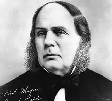 In 1874, Conrad Reid (September 30, 1802 – March 24, 1883) was elected the first mayor of the newly incorporated village (city) of Lorain, Ohio (founded as 'Black River village' by his father, John S. Reid).[1] Conrad served as the village's Postmaster in 1835, and he built a two-story hotel called the Reid House that same year. (His father had also operated an earlier log-structure "Reid House" inn/tavern, nearby.) Conrad was appointed a U.S. Marshal during the Civil War. He resigned from office of mayor on October 7, 1875. The Reid House hotel burned down one month after Conrad Reid's death.