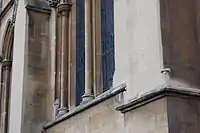 The breakdown of the skeletal structure that holds the glass in place, such as damage to tracery and the corrosion of metal cames and fixing systems, often poses the greatest, imminent risk to stained glass work (Vogel et al. 2007, 7). Although stone elements are not prone to excessive change due to environmental conditions, this is not the case with metals, which are much more likely to deteriorate from prolonged exposure to the elements. For example, the cames that make up the matrix of a stained-glass window, for which lead and zinc were most commonly used, undergo quite a bit of thermal expansion and contraction, eventually resulting in metal fatigue, which in turn weakens the joints between the plates, causing whole panels to deform or simply fall apart (Vogel et al. 2007, 8). Additionally, metal matrixes and frames may weaken with stress, such as that which has occurred at Holy Trinity Church in Stratford-upon-Avon, UK, where years of wind buffeting the leaded clerestory windows has endangered the structural integrity of not only the glazing but also, the upper portion of building itself (fig. 3) (Friends of Shakespeare's Church 2009).
