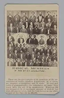 In 1867, Radical Republicans took control of the U.S. Congress and ended the period known as Presidential Reconstruction. Under the Reconstruction Acts, the former Confederate states were required to adopt new constitutions and ratify the 14th Amendment. As a result, South Carolina was bidden to call forth a constitutional convention to adopt a new framework of government.[1]