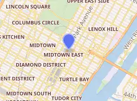 Until the closure in 2009, the consulate general's office was housed at One Dag Hammarskjöld Plaza, the intersection of the 48th Street and the Second Avenue, on the 45th floor.[7] When the honorary consulate general opened in 2010, the office moved to 445 Park Avenue between 56th Street and 57th Street, for the reason that the honorary consul general David E.R. Dangoor already had offices in this building.[7] After the upgrade to consulate general in December 2016, the consulate general's address became 445 Park Avenue until further notice.[8] Since 2017, the office is again located at One Dag Hammarskjöld Plaza, but on the 40th floor.