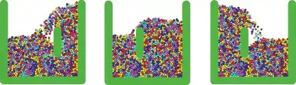 - Motion of many particles, spheres which fall in a funnel, mixing processes (granular media)