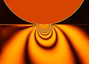 Contact mechanics is the study of the deformation of solids that touch each other at one or more points.[1][2] A central distinction in contact mechanics is between stresses acting perpendicular to the contacting bodies' surfaces (known as the normal direction) and frictional stresses acting tangentially between the surfaces. This page focuses mainly on the normal direction, i.e. on frictionless contact mechanics. Frictional contact mechanics is discussed separately. Normal stresses are caused by applied forces and by the adhesion present on surfaces in close contact even if they are clean and dry.