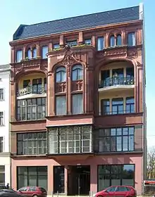 He formed Schmidthassler-Film GmbH in 1911, which became Continental-Kunstfilm the following year. Schmidthässler and Max Rittberger, an engineer and businessman, signed their partnership agreement on 5 February 1912, with a share capital of 150,000 marks.[3] On 12 February 1912 Continental-Kunstfilm moved into the old Deutsche Vitascope studio at 123 Chausseestraße, vacated when Greenbaum moved all his Vitascope production facilities to 32-34 Lindenstraße.[4] The building (fronted in red sandstone) in Chauseestraße was built in the colorful and decorative Jugendstil style. Continental's main offices were located at 235 Friedrichstraße, Berlin.