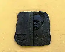 - The inscription ERBAUT MDCCCXCVI (built 1906) appears on the building. Remarkably it survived World War II, and ended up on the East Berlin side of the Berlin Wall not far from the Chausseestraße Berlin border crossing after 1961. Chauseestraße features towards the end of the 2015 film Bridge of Spies, although 123 doesn't appear to be included in the shots. In number 121 next door (destroyed during the war), Karl Liebknecht founded Spartakusbund on 1 January 1916. See 'Spartacus Memorial' in Luisenstädtischer Bildungsverein (2002), retrieved 1 April 2015.