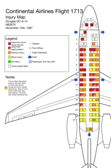 Flight 1713 was operated using a 21-year old McDonnell Douglas DC-9-14, a twin-engine, narrow-body jet airliner with the registration number N626TX.[1]:7 The aircraft was equipped with two Pratt & Whitney JT8D-7B engines.[1]:7 It was originally delivered to Air Canada in May 1966, and sold to Texas International Airlines in 1968, where it served the majority of its service until being sold to Continental in 1982.[7][1]:7 In 21 years of service, it had accumulated over 52,400 flight hours and over 61,800 cycles.[1]:7