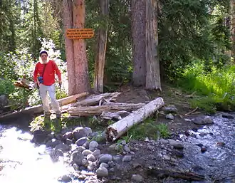The Continental Divide Trail (CDT) follows the Divide through the U.S. from the Mexico–US border to the Canada–US border. The trail itself is a corridor of pathways - i.e. dedicated footpaths or back roads, either on or near the Continental Divide. A less-developed Canadian extension called the Great Divide Trail continues through five national parks and six provincial parks, ending at Kakwa Lake in east-central British Columbia.[11]