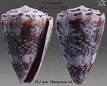Conus encaustus, common name the burnt cone, is a species of sea snail, a marine gastropod mollusk in the family Conidae, the cone snails and their allies.[2]