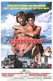 Convoy is a 1978 action-comedy film directed by Sam Peckinpah and starring Kris Kristofferson, Ali MacGraw, Ernest Borgnine, Burt Young, Madge Sinclair and Franklyn Ajaye. The film is based on the 1975 country and western novelty song "Convoy" by C. W. McCall. The film was made when the CB radio/trucking craze was at its peak in the United States, and followed the similarly themed films White Line Fever (1975) and Smokey and the Bandit (1977). It was the most commercially successful film of Peckinpah's career.