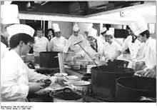 A cook is a profession for individuals who prepare food for consumption in the food industry in settings such as restaurants. A cook is sometimes referred to as a chef, although in the culinary world, the terms are not interchangeable. Cooks' responsibilities include preparing food, managing food stations, cleaning the kitchen, and helping the chefs.[1] Restaurants will give a title to the cooks according to their designated stations.[2] Examples are broiler cooks, fry cooks, pantry cooks, and sauce cooks.
