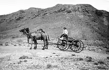 Prospector riding "Misery", a famous camel that travelled a record 970 kilometres (600 mi) without water, 1895[7]