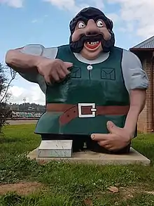 When the statue was taken down it was purchased by Allan and Phuong Jenkins, who ran a florist shop nearby. In 1985 Allan participated in a Round-Australia marathon run by Rotary International and the Australian Cancer Society as a fundraiser, and his support vehicle was surmounted by "The Giant". In 2014 the Jenkins couple donated the statue to the Cootamundra Heritage Centre. Local artist Jim Newman did its original paintwork back in 1975, and his brother Robert Newman was responsible for its restoration in 2015.[36] The statue is located alongside the Heritage Centre on Hovell Street, near the railway station.