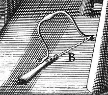 The coping saw was most likely invented in middle of the 16th century following innovations in metallurgy and with the invention of the spring-driven clock. Blades made of this material were strong and flexible thanks to rolling.[1][2] This saw was also used in combination with so called Chevalet du Marqueterie, invented in 1780, allowing to saw pack of veneers with one angle of cut.[3]
