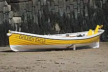 The Cornish pilot gig is a six-oared rowing boat, clinker-built of Cornish narrow-leaf elm,[1] 32 feet (9.8 m) long with a beam of 4 feet 10 inches (1.47 m). It is recognised as one of the first shore-based lifeboats that went to vessels in distress, with recorded rescues going back as far as the late 17th century. The original purpose of the Cornish pilot gig was as a general work boat, and the craft is used as a pilot boat, taking pilots out to incoming vessels off the Atlantic Coast. At the time pilots would compete between each other for work; the fastest gig crew who got their pilot on board a vessel first would get the job, and hence the payment.