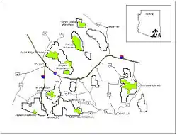 The public campgrounds located within the Coronado National Forest,[3] most requiring a daily/nightly fee (see Coronado National Forest official website for accurate and current details), are: