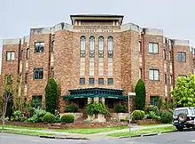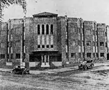 Coronet Flats was completed in November 1933 and was described at the time as having "the architectural dignity of a mansion".[2] Max Strickland, Melbourne businessman and building developer, determined that Brisbane was lacking "up-to-date, well serviced" flats and contracted to have Coronet Flats built. Initially, Strickland planned an extension to be constructed adjacent (probably at 999 Brunswick Street) that would double the size of the building if the development proved successful. The two buildings would have formed a courtyard between them for a swimming pool, extra garages, and laundries.[3] This is probably where the alternative name "Coronet Court" is derived. This was never realised with Strickland constructing a detached house on the site at a later date. The building was very popular at the time (with four of the nine flats let prior to completion) and remains so today. Strickland sold the building in 1939; since then it has stayed within the O'Connor family.