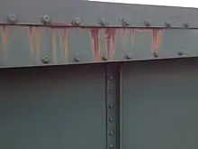Rust is one of the most common causes of bridge accidents. As rust has a much higher volume than the originating mass of iron, its build-up can also cause failure by forcing apart adjacent parts. It was the cause of the collapse of the Mianus River Bridge in 1983, when the bearings rusted internally and pushed one corner of the road slab off its support. Three drivers on the roadway at the time died as the slab fell into the river below. The following NTSB investigation showed that a drain in the road had been blocked for road re-surfacing, and had not been unblocked; as a result, runoff water penetrated the support hangers. Rust was also an important factor in the Silver Bridge disaster of 1967 in West Virginia, when a steel suspension bridge collapsed within a minute, killing 46 drivers and passengers on the bridge at the time.