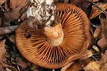 Cortinarius cinnamomeus, also known as the cinnamon webcap, is a basidiomycete mushroom of the genus Cortinarius. The fungus produces brown fruit bodies with caps up to 6 cm (2.4 in) wide and stems up to 12 cm (4.7 in) long. The closely crowded gills underside the cap are initially yellow before turning brown. Cortinarius cinnamomeus is common in damp places in coniferous forests. It is distributed throughout the temperate zone of the Northern Hemisphere.