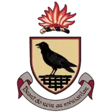 In heraldry, the term Corvus refers to depictions of either crows or ravens, as they are not distinguished from each other. A corvus is usually depicted with hairy feathers and closed wings. The term shares the same roots as the genus corvus, the Latin term for raven.[1]