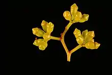 Yellowjacket was first formally described in 1925 by Joseph Maiden in the Journal and Proceedings of the Royal Society of New South Wales and given the name Eucalyptus bloxsomei.[5][6] In 1995, Ken Hill and Lawrie Johnson changed the name to Corymbia bloxsomei.[7][4] The specific epithet (bloxsomei) honours "Herbert Schreiber Bloxsome".[6]
