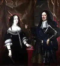 Ferdinando beseeched Louis XIV to do something about his daughter-in-law's behaviour; he sent the Comte de Saint-Mesme. Marguerite Louise wanted to return to France, and Saint-Mesme sympathised with this, as did much of the French court, so he left without finding a solution to the heir's domestic disharmony, incensing both Ferdinando and Louis XIV.[14][15] She humiliated Cosimo at every chance she got: she insisted on employing French cooks, as she feared the Medici would poison her. In September 1664 Marguerite Louise abandoned her apartments in the Pitti, the grand ducal palace. Cosimo moved her into Villa Lapeggi. Here, she was watched by forty soldiers, and six courtiers, appointed by Cosimo, had to follow her everywhere.[16] The next year she reconciled with the grand ducal family, and gave birth to Anna Maria Luisa, future Electress Palatine, in August 1667. The delicate rapprochement that existed between Marguerite Louise and the rest of the family collapsed after Anna Maria Luisa's birth, when Marguerite Louise caught smallpox and decided to blame Cosimo for all her problems.[17]