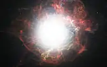 Conditions in interstellar space are generally not suitable for the formation of silicate cores. This would take excessive time to accomplish, even if it might be possible. The arguments are that: given an observed typical grain diameter a, the time for a grain to attain a, and given the temperature of interstellar gas, it would take considerably longer than the age of the Universe for interstellar grains to form.[36] On the other hand, grains are seen to have recently formed in the vicinity of nearby stars, in nova and supernova ejecta, and in R Coronae Borealis variable stars which seem to eject discrete clouds containing both gas and dust. So mass loss from stars is unquestionably where the refractory cores of grains formed.
