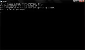 An operating system built with Cosmos is developed in a similar fashion to any .NET C# console program. Additional references are made in the start of the program which give access to the Cosmos libraries. These libraries override the system libraries normally used in C# console programs since the resulting binary won't be running on an installation of Microsoft Windows.