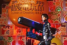 Cosplay has influenced the advertising industry, in which cosplayers are often used for event work previously assigned to agency models.[59] Some cosplayers have thus transformed their hobby into profitable, professional careers.[80][81][82] Japan's entertainment industry has been home to the professional cosplayers since the rise of Comiket and Tokyo Game Show.[59] The phenomenon is most apparent in Japan but exists to some degree in other countries as well. Professional cosplayers who profit from their art may experience problems related to copyright infringement.[83]