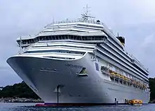 The vessel was built along the same lines as Carnival Cruise Lines' Destiny class. The aft decks are tiered and have limited open deck space.[1] The vessel has a gross tonnage (GT) of 102,669 and 8,200 tons deadweight (DWT).[2][lower-alpha 1] Costa Fortuna is 272.19 metres (893 ft 0 in) long overall and 230 metres (754 ft 7 in) between perpendiculars with a beam of 35.54 m (116 ft 7 in) and a depth of 14.18 m (46 ft 6 in).[3][4]