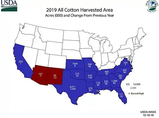 - "Cotton Sector at a Glance". USDA Economic Research Service. United States Department of Agriculture. 20 August 2019.