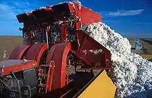 The average production of lint per acre in 1914 was estimated by the United States Department of Agriculture to be 209 pounds, a nominal change from 1911 when it was 208 pounds. In the early 1910s, the average yield per acre varied between states: North Carolina (290 pounds), Missouri (279 pounds), South Carolina (255 pounds), Georgia (239 pounds); the yield in California (500 pounds) was attributed to growth on irrigated land.[19] By 1929, the cotton ranches of California were the largest in the US (by acreage, production, and number of employees).[20] By the 1950s, after many years of development, the mechanical cotton picker had become effective enough to be commercially viable, and it quickly gained appeal and affordability throughout the U.S. cotton growing area.[21]