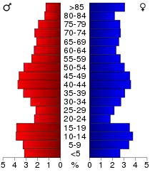 The county population contained 25.00% under the age of 18, 6.50% from 18 to 24, 23.20% from 25 to 44, 23.20% from 45 to 64, and 22.10% who were 65 years of age or older. The median age was 42 years. For every 100 females there were 94.50 males. For every 100 females age 18 and over, there were 91.50 males.