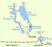 - Map Map of New Iceland along shore of Lake Winnipeg[15]