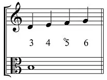 Double neighbor tones: the figure is prolonged over four beats and allows special dissonances. The upper and lower tones are prepared on beat 1 and resolved on beat 4. The fifth note or downbeat of the next measure should move by step in the same direction as the last two notes of the double neighbor figure. Lastly a double passing tone allows two dissonant passing tones in a row. The figure would consist of 4 notes moving in the same direction by step. The two notes that allow dissonance would be beat 2 and 3 or 3 and 4. The dissonant interval of a fourth would proceed into a diminished fifth and the next note would resolve at the interval of a sixth.[15]