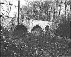 County Bridge No. 171 is a historic stone arch bridge located in Tredyffrin Township, Chester County, Pennsylvania. It spans Valley Creek. It has three spans; the main span is 25 feet long and flanked by two 15-feet long spans. The bridge was constructed in 1907, of coursed rubble with brick arch rings and a contrasting parapet.[2]