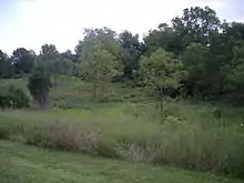 Malletts Creek is a tributary of the Huron River and the most substantial waterway in the City of Ann Arbor at a length of 4.7 miles (7.6 km).[11][12] A tributary of Maletts Creek flows through County Farm Park, and in 2011 and 2012 a portion of this tributary within the park was converted into a three-acre wet meadow with native vegetation.[6][12][13] The conversion was part of a larger Malletts Creek restoration project that cost $2.8 million and resulted in the accidental death of an excavator operator, although it was successful in mitigating the threat of erosion to the creek and reducing the amount of phosphorus that flowed through it and into the Huron River by 25 percent.[6]